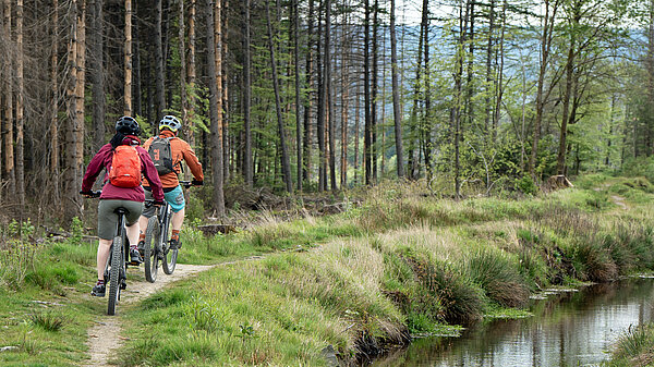 Es geht über gut fahrbare Trails zu vielen Gräben und Teichen der historischen Oberharzer Wasserwirtschaft. Sie liegen so verstreut wie die Bergwerke, denen sie einst Energie lieferten.